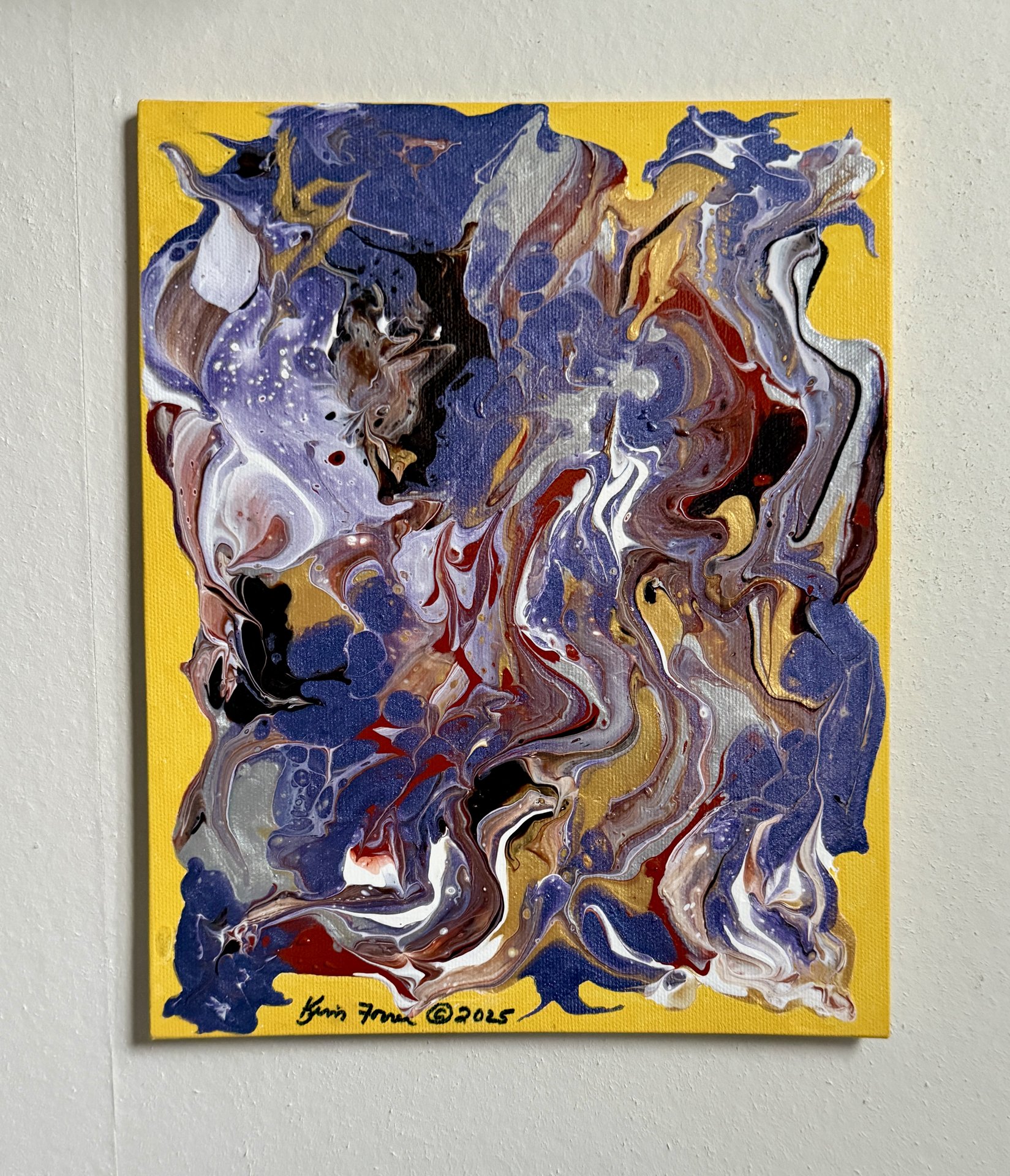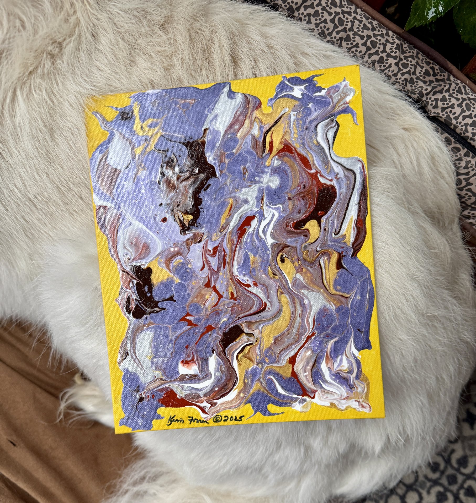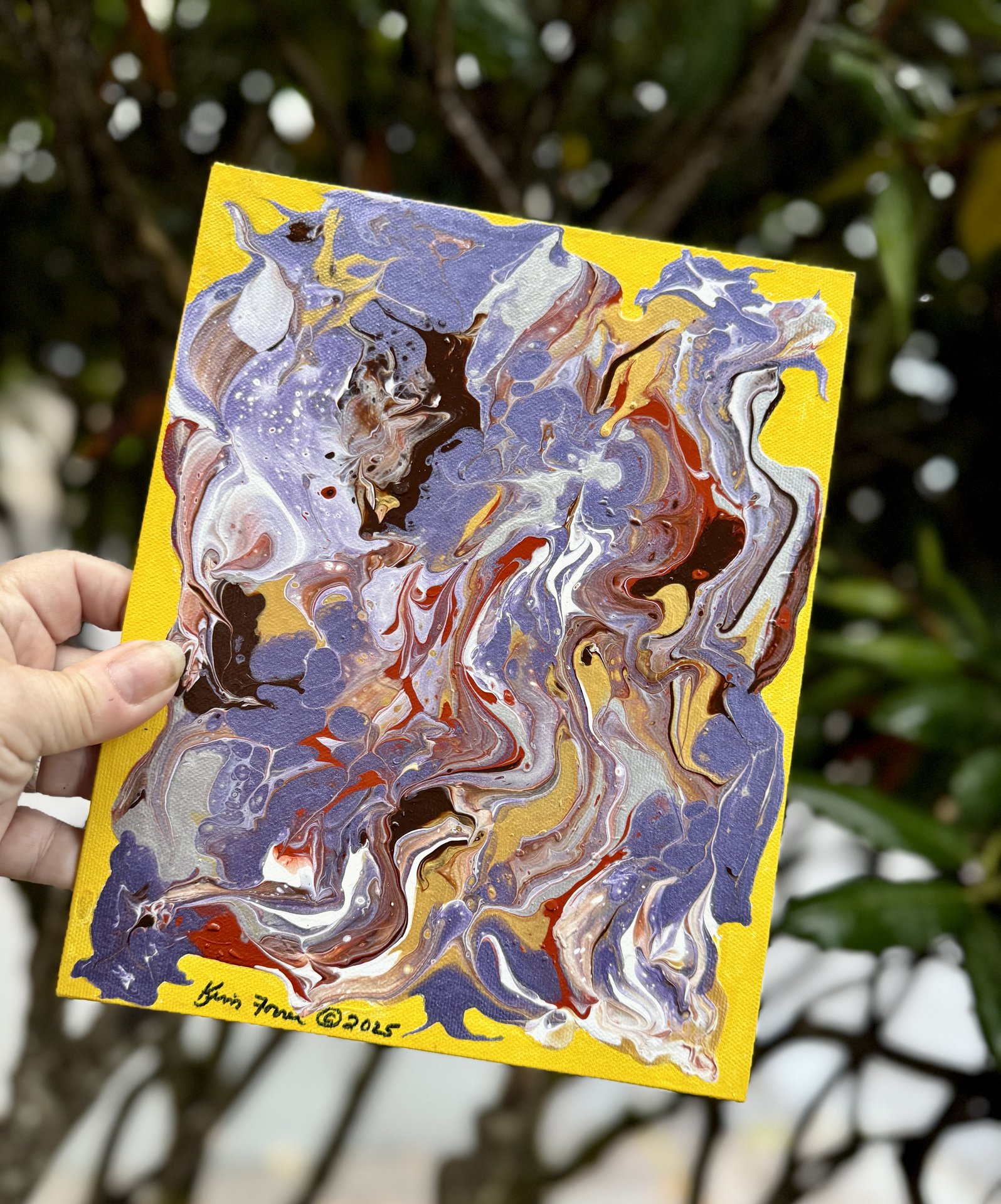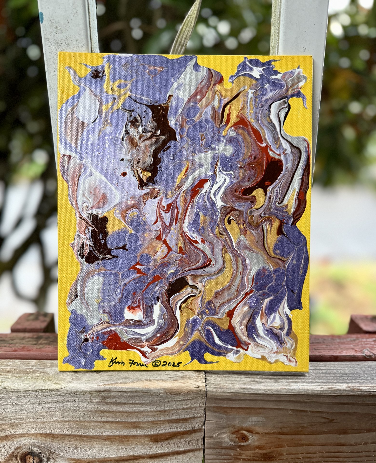 Frolicking $24.00 Only 1 available Quantity An 8” x 10” acrylic fluid art on canvas board. Light enough for a photo stand or put in a frame. You can see some cute creature eyes frolicking in the water.