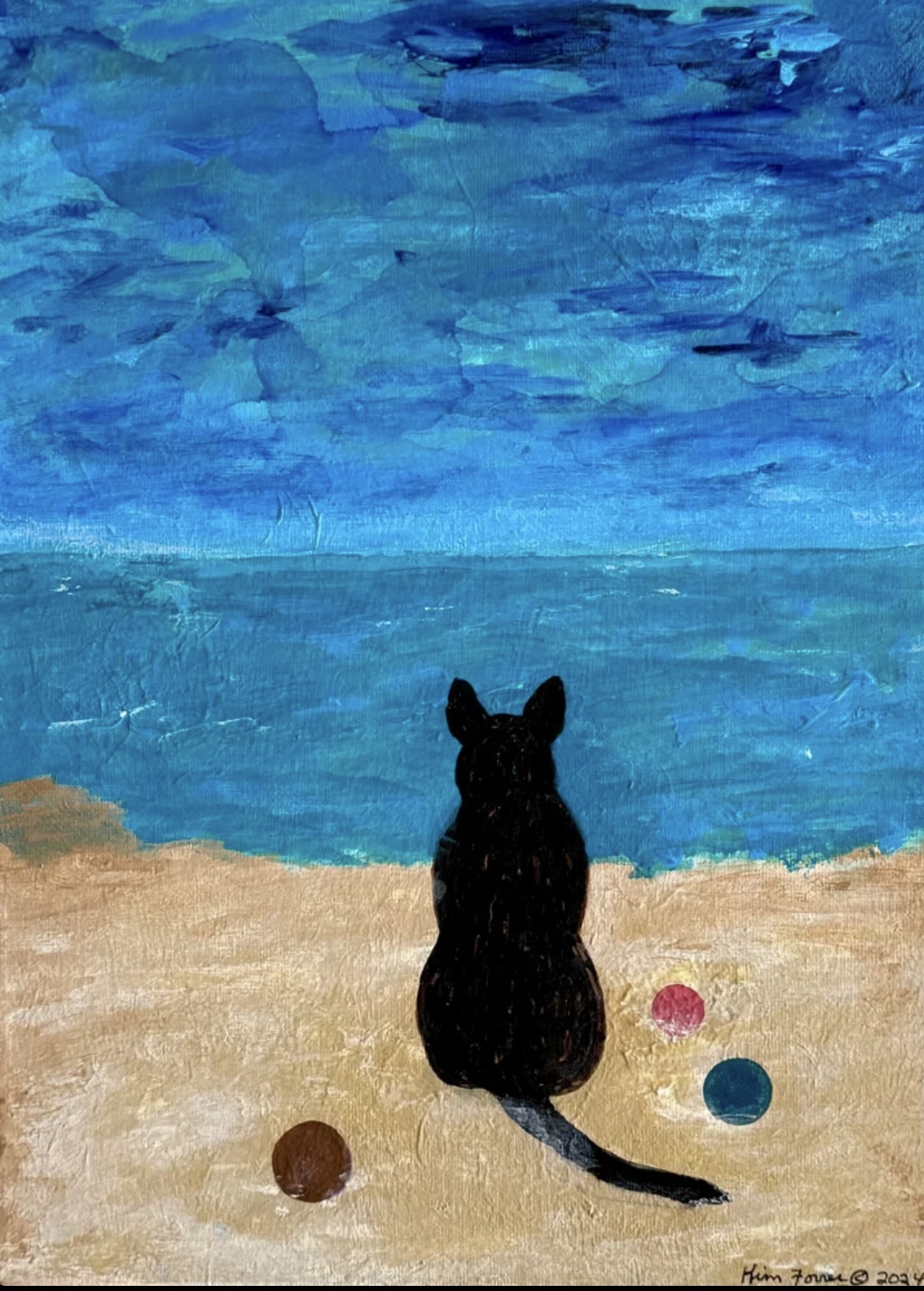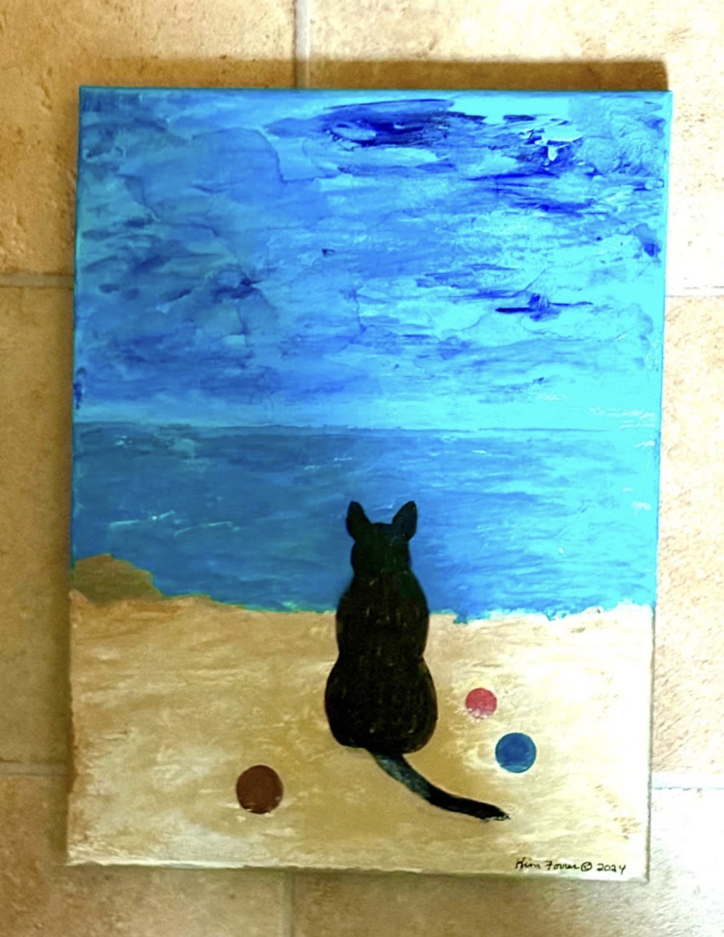 I love dogs to had to do a cute dog painting! This pup is waiting for someone to throw a ball! Painted with acrylics on 9” x 12” x 3/4” canvas stretched on wood. Painted on the sides so it’s ready to hang. Sealed with UV protection sealant. Painting is signed and dated.